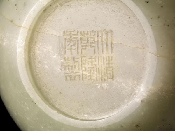 in giada verde pallido, recanti marchio Qianlong, diam. cm 8,5