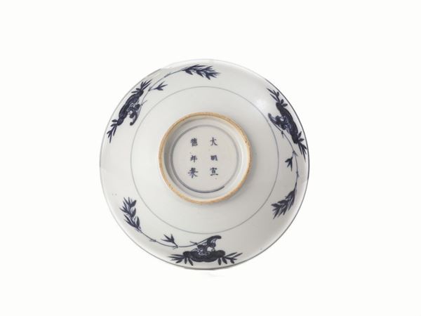 in porcellana bianca e blu, con fiore centrale, diam. cm 20