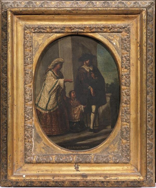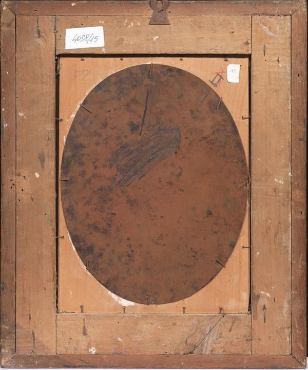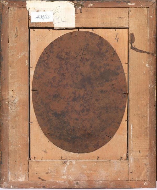 coppia di dipinti ad olio su rame ovali, cm 30x22 ciascuno (2)