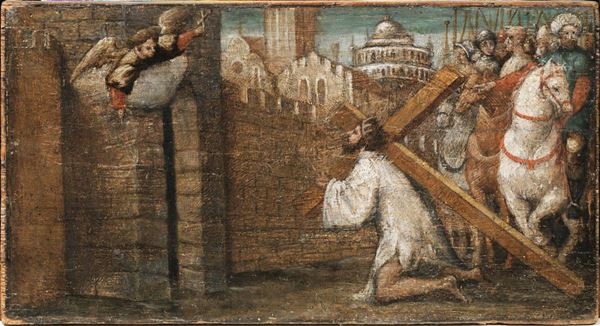 sul retro di uno dei due dipinti antica iscrizione a bistro relativa alla provenienza