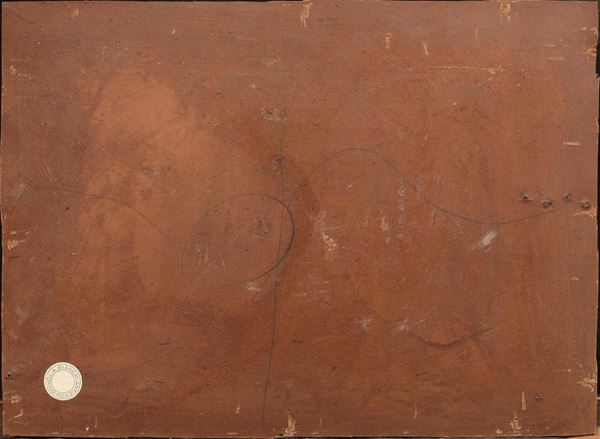 coppia di dipinti ad olio su pergamena, cm 23,5x37 ; cm 28x39 (2)