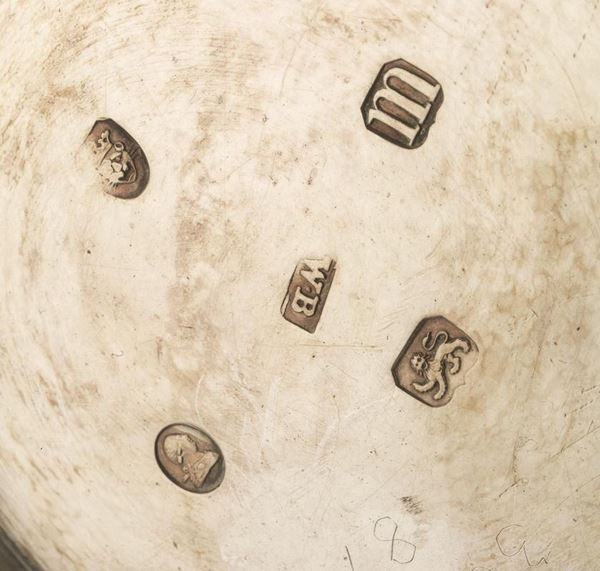 in argento, corpo decorato da scena bacchica con putti entro paesaggio,