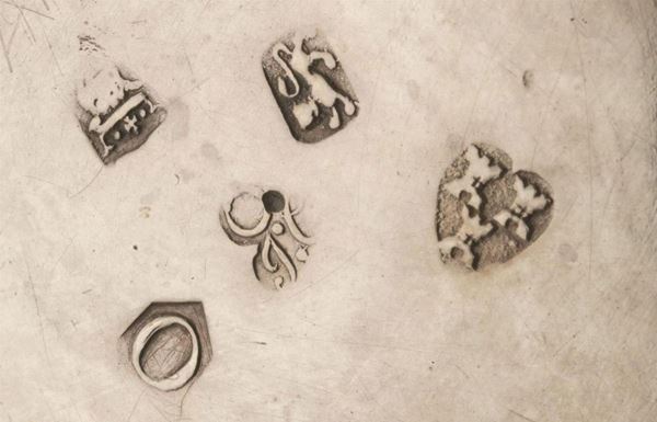 TANKARD, NEWCASTLE, 1753, ARGENTIERE ISAAC COOKSON corpo decorato da paesaggio campestre con animali, coperchio a cupola, presa sagomata, alt. cm 19,5, g 705 (decoro a sbalzo probabilmente eseguito in epoca posteriore)