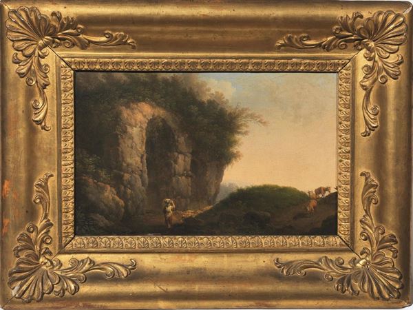 coppia di dipinti ad olio su tavola, cm 22,5x33,5