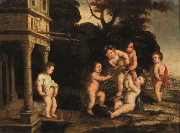 coppia di dipinti ad olio su tavola, cm 46 x 33