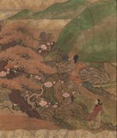 su carta raffiguranti figure in dei giardini, cm 20x17 ciascuno (4)