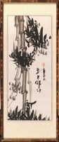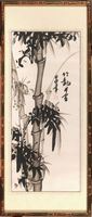 su carta, una coppia ra f figurant e canne di bamb ù con augurio di pace e serenità, cm 51x22,5 ciascuno, il terzo raffigurante zucchine tra foglie con augurio di buona fortuna, cm 65x25,5 (3)
