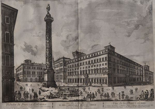 stampa su carta, mm 480x610 Scuola italiana, sec. XVIII VEDUTA DI PALAZZO COLONNA DI SCIARRA stampa su carta, mm 480x610