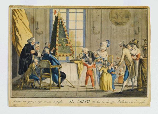 Sette acqueforti con acquerellatura depoca, mm 260x370