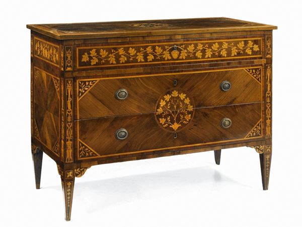 in noce filettato, tre cassetti, gambe troncopiramidali, cm 125x59x92 (2)