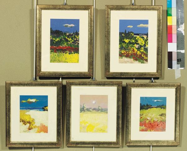 dieci dipinti ad olio su cartoncino da cm 10,5x16,5 a cm 21x25