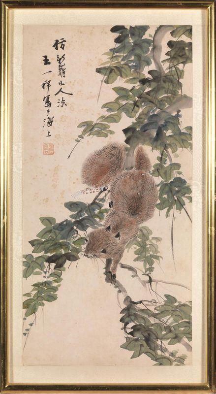 un dipinto raffigurante scoiattolo su un ramo, cm 54x27, un dipinto