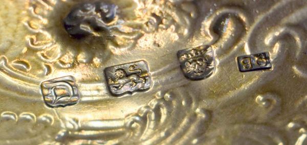 in argento cesellato e inciso a volute e fiori