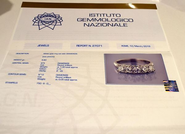 al centro una fila di cinque brillanti, per circa