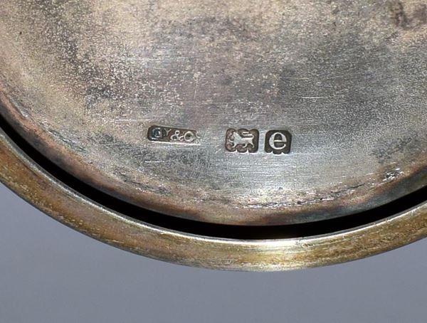 in argento , base appesantita diam. cm 13 alt. cm 7 difetti