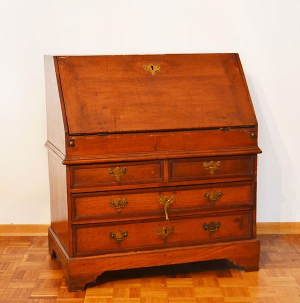 Ribalta, Inghilterra, sec. XVIII, in rovere, fronte a due cassetti allineati sottesi da due cassetti a tutta lunghezza, ribalta celante tiretti, sportello e vani a giorno, cm 90x55x102