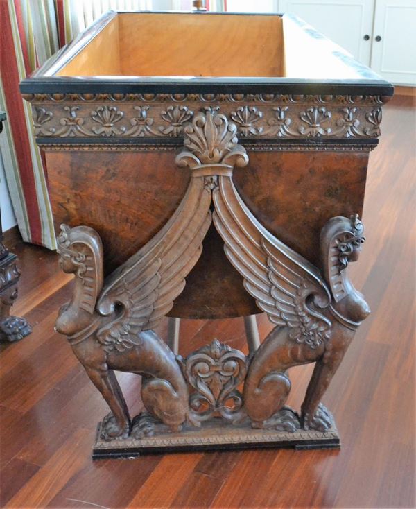 Toilette, e culla, in stile Impero, in noce e radica di noce, piano in