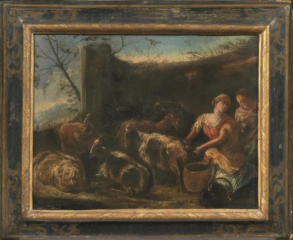 coppia di dipinti ad olio su tela, cm 36x47,5