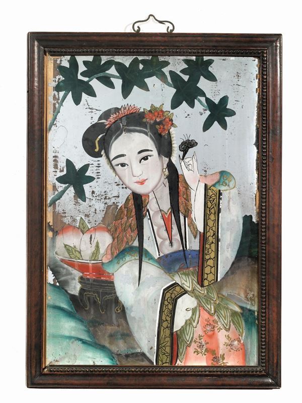 Gruppo di tre dipinti su specchio, Cina, sec. XX