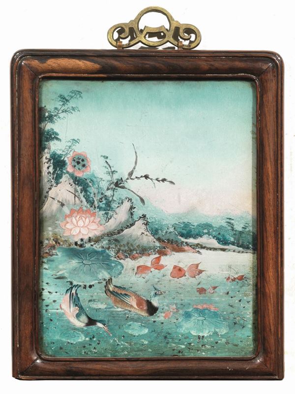Gruppo di tre dipinti su vetro, Cina, sec. XX