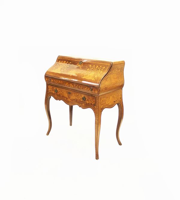 Ribalta, Olanda, sec. XIX, in mogano filettato e intarsiato in bois de