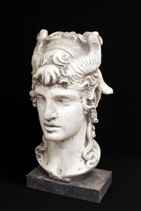 Scultura, sec. XX, in gesso patinato, raffigurante satiro, alt. cm 47,5