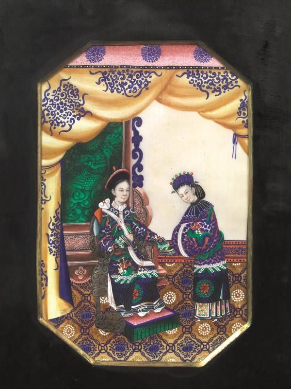 raffigurante personaggi in interno, stile cantonese; cm 31x20 (6)