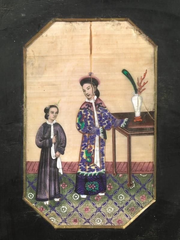 Gruppo di sei disegni, Cina, sec. XIX, tempera su carta di riso