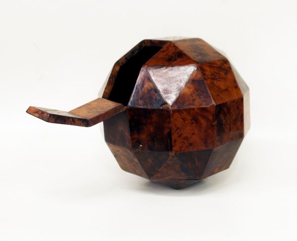 Soprammobile, sec. XX, in radica, realizzato a forma di solido irregolare,
