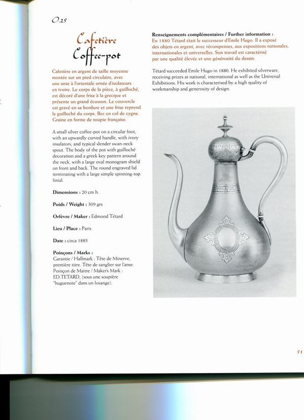 CAFFETTIERA , PARIGI 1880 , ARGENTIERE E. HUGO