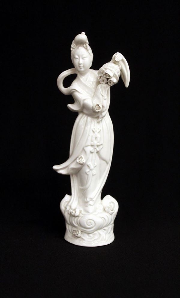 Scultura, Cina, sec. XX, in porcellana bianca, raffigurante Guanin, alt. cm