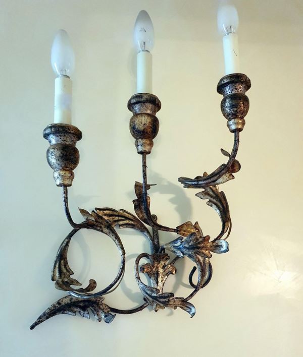 Coppia di applique , sec. XX, in metallo lavorato lavorato a foglie, cm
