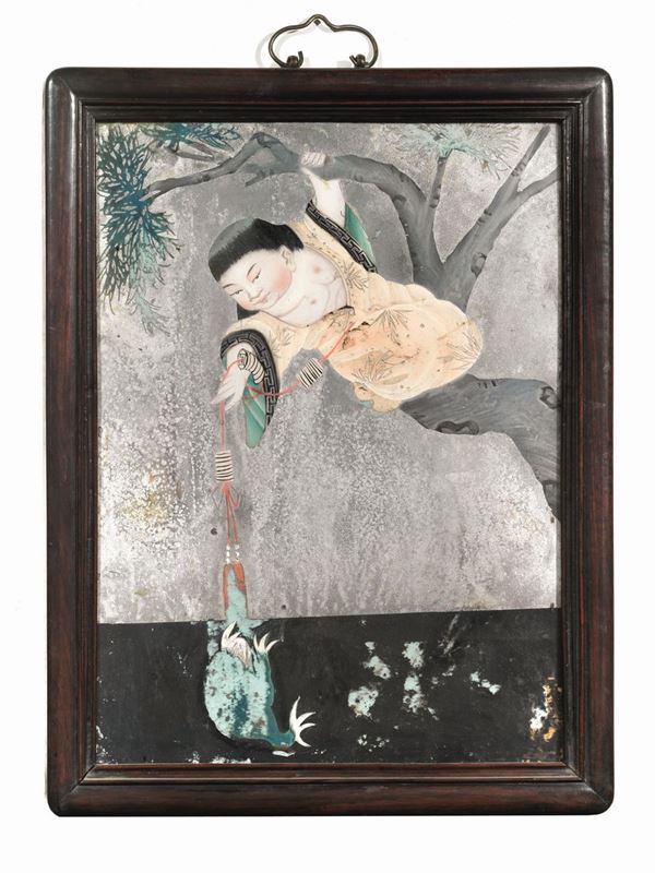Gruppo di tre dipinti su specchio, Cina, sec. XX