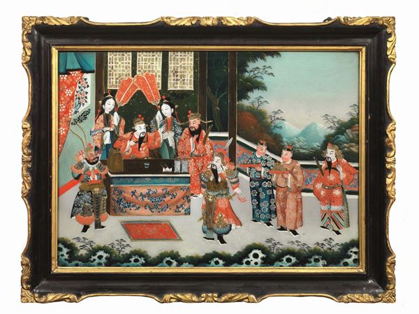 Gruppo di tre dipinti su vetro, Cina, sec. XX