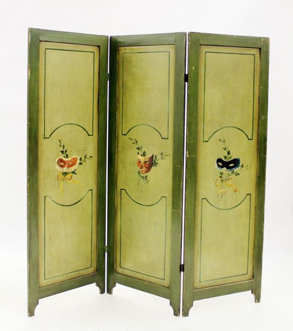 Paravento, sec. XX a tre elementi snodati in