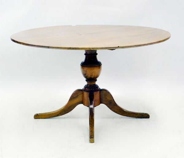 in noce, piano circolare su fusto centrale vasiforme, alt. cm 77, diam. cm