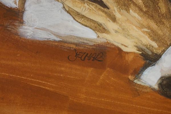 Lotto di sei illustrazioni firmate Delmar eseguite per la rivista "Bella" , acquerello su cartoncino, cm 57x47 max. (6)