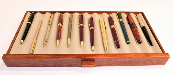 NOVE STILOGRAFICHE E UNDICI PENNE TRA BIRO E LAPIS