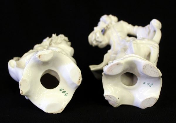 in cer a mica bianca smaltata, raffiguranti coppia di figure in abiti