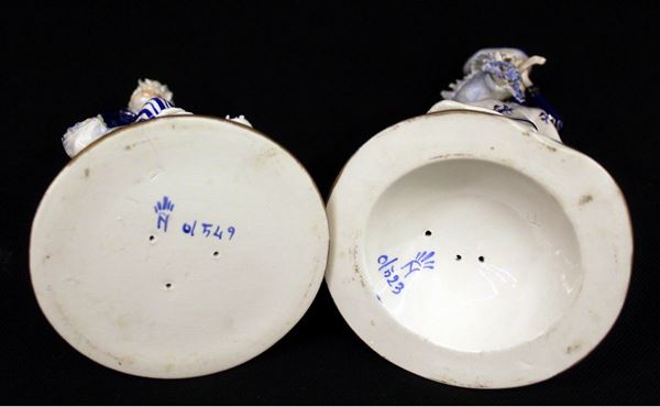 manifattura Capodimonte, in porcellana dipinta in policromia, raffiguranti