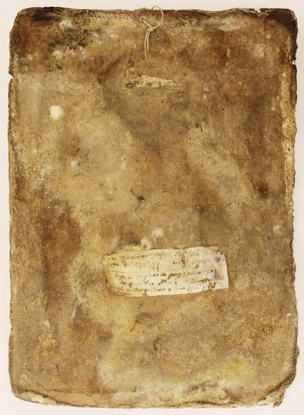 in gesso e tela dipinto in policromia, raffigurante Maternità cm 43x60,