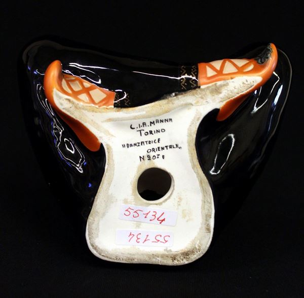 in ceramica dipinta in policromia, raffigurante odalisca, alt. cm 32
