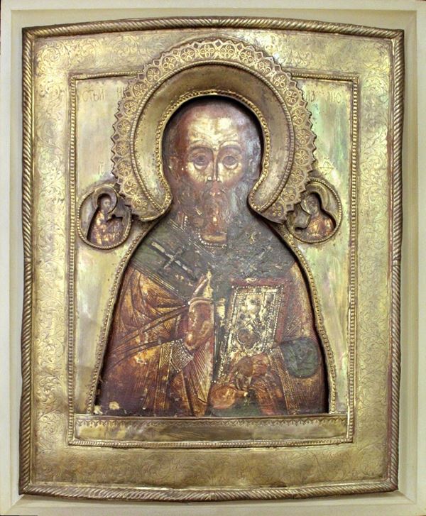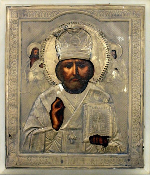tempera su tavola, rizza in argento, entro unica cornice metacrilato