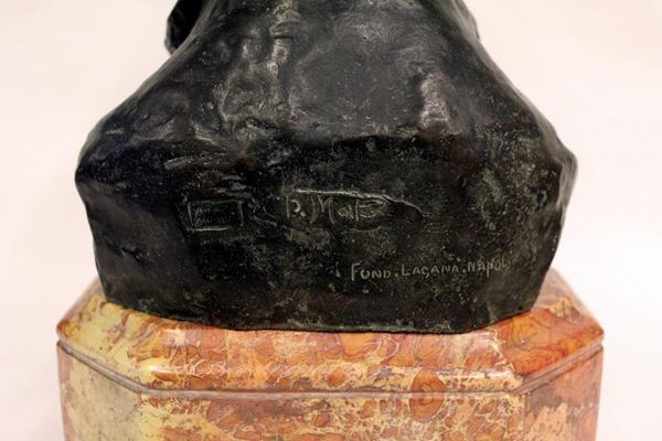 fusione in bronzo su base in marmo, alt. complessiva cm 45