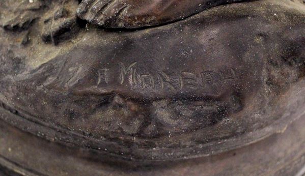 scultura in bronzo su base in marmo, alt. cm 75, difetti