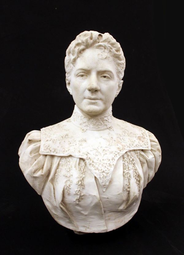 in marmo bianco, raffigurante figura femminile, cm 64, firmato G. Marin difetti