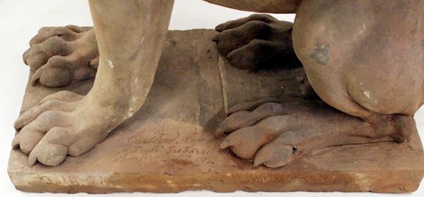 in terracotta, raffiguranti grifoni, alt. cm 95, difetti e restauri, (2)
