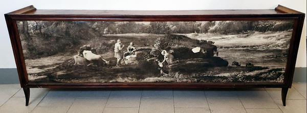 in noce, quattro sportelli scanalati, sul retro stampa raffigurante Scena