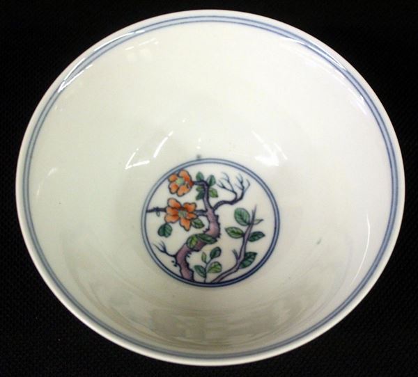 in porcellana a smalti Ducai, con decoro ad uccellini e rami di ciliegio in