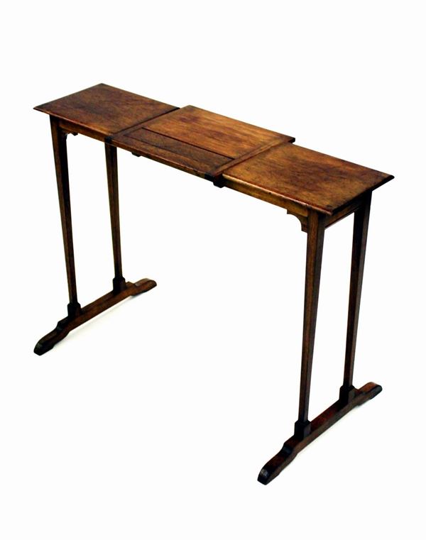 in mogano, piano rettangolare centrato da leggio, sostegni troncoconici